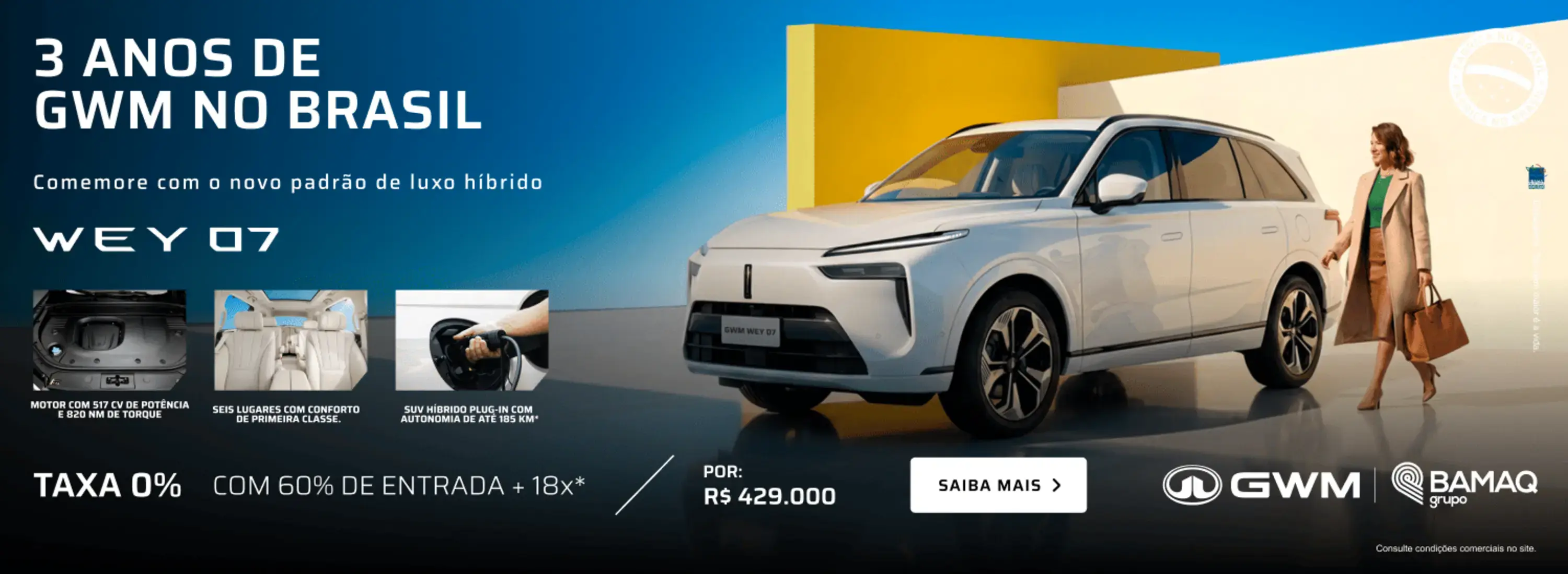 Muito prazer, somos a GWM. Uma das maiores fabricantes de automóveis do mundo e a mais nova AutoTech do Brasil. Aqui tecnologia e sustentabilidade andam juntas para criar uma nova experiência de direção. Mais limpa, mais conectada, mais livre. Descubra nossos lançamentos e prepare-se para uma nova era de mobilidade, com você no comando. O futuro chegou. Hello, tomorrow.